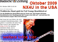 NX4U wurde vermutlich 1989 in Waldkirch/Breisgau gegründet... so genau weiß das Datum keiner der Beteiligten mehr. Das liegt wohl auch am leichten Hang zum Chaos, den das Quintett liebevoll kultiviert – trotz dass (oder weil?) NX4U nicht mehr ganz als Teenie-Band durchgeht... NX4U ist laut, frech und spontan. Immer noch, nach all den Jahren. Immer noch eine Garagenband, so wie The Who, bevor sie Millionen scheffelten. Oder Jefferson Airplane, bevor Grace mit dem Starship abhob. Aber eben doch ganz anders. NX4U eben. Die Band liebt Neil Young. Von ihm stammt ein Gutteil des Repertoires. Aber auch eigene Stücke, wenn nicht gerade Johnny Cash mit jahrzehntealten Marshall-Verstärkern in den Saal geblasen wird, sind angesagt. Zuweilen erscheint NX4U überfallartig in Fußgängerzonen und konzertiert unplugged, wobei auch gerne eine Drehorgel zum Einsatz kommen darf. Konzerte im europäischen Ausland gab es auch schon einige – seither gibt es NX4U-Fans z.B. in Frankreich und in Belgien. Die Musiker von NX4U trifft man gelegentlich in den USA beim Besuch von Neil-Young-Konzerten – oder schon mal bei einer Session mit Musikern, die mit Neil on Tour waren. Oder die Mitwirkung beim Zain's Glasses-Projekt, einem internationalen Neil-Young-Tribute-Sampler... ...oder... ...oder... |